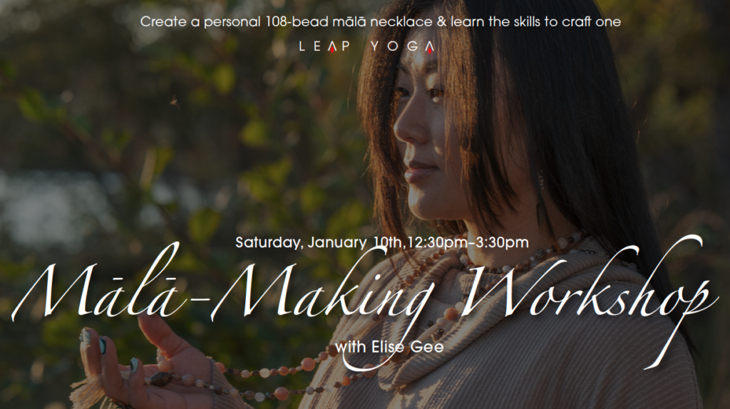 Mālā-Making Workshop with Elise Gee Saturday, January 10th, 2026 12:30pm – 3:30pm Create a personal 108-bead mālā...